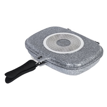32 cm Snow Ceramic Marble Coating Double Fry Pan Double Grill Pan Non-stick